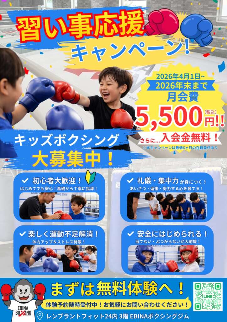 多くのお子様にボクシングの楽しさを知っていただくため、キッズ(小学生)会費を期間限定の特別価格でご案内いたします✨